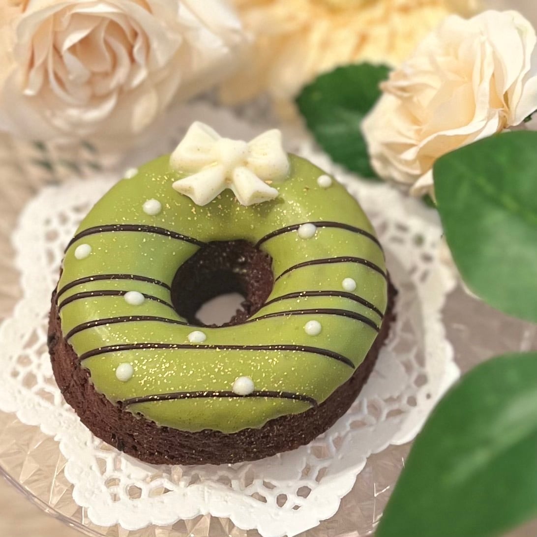 ショコラ生地に抹茶味のチョコレートをかけてみました(^.^)